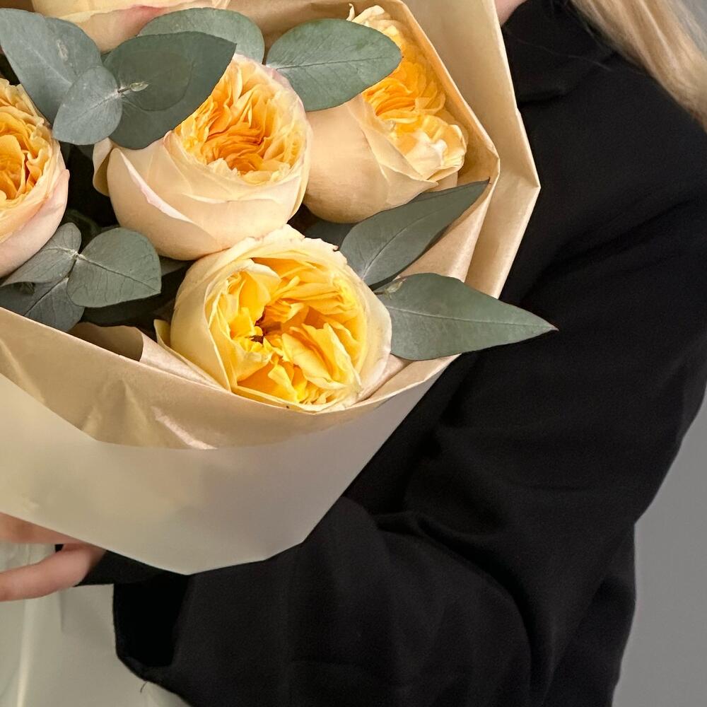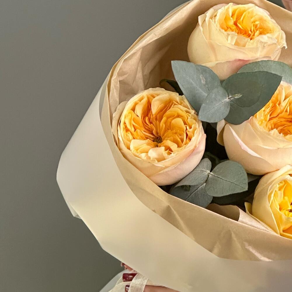 Букет из 5 пионовидных роз с эвкалиптом в Луге